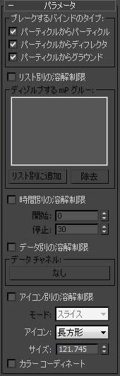- 指定したフレーム範囲内(絶対値)の接着のみを溶解します。有効にしたら、[開始](Start)および[終了](Stop)パラメータによりフレーム範囲を設定します。