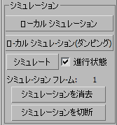 アクティブなタイム セグメント上でシミュレーションを作成します。この場合、アニメーション データは、[ローカル シミュレーション](Simulate Local)とは異なり、フレームごとにシミュレーション キャッシュの形式で作成されます。