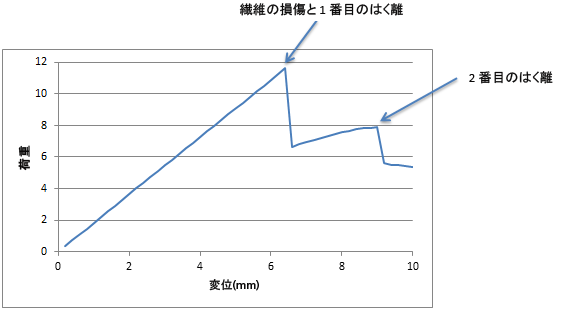 - 圧縮変位を適用しているため、スプレッドシートにデータをエクスポートして、結果を Quadrant I でプロットする方がより効果的な場合があります。荷重-変位プロットを使用することで、グローバルな損傷イベントを簡単に識別し、前に示したコンター プロットに関連付けることができます。