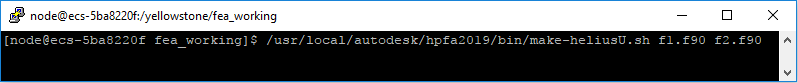 適切な環境が設定されると、ユーザ サブルーチン ライブラリをコンパイルして、Helius PFA とともにインストールされたシェル スクリプトを使用してリンクさせることができます。このシェル スクリプトは、ADSDIR/hpfa2019/bin/make-heliusU.sh に格納されています。ここで、ADSDIR はオートデスク製品の基本的なインストール パスです。目的のソース コードが格納されるフォルダからこのスクリプトを実行して、そのスクリプトに対して各 Fortran ソース ファイルを引数として送信します。たとえば、ユーザ サブルーチンが file1.f90 および file2.f90 ファイルに含まれている場合、ライブラリを作成するコマンドは次に示すとおりです(Helius PFA が /usr/local/autodesk/hpfa2019 にイントールされていることが前提)。
