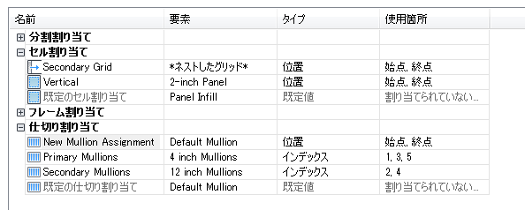 2. [建築オブジェクト]を展開し、[カーテン ウォール スタイル]を展開します。