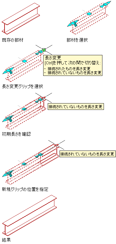 グリップの選択後、値を入力することで構造部材の長さを増減させることもできます。