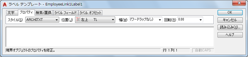 ラベルにスタイルを適用します。現在のスタイルは、システム変数 TEXTSTYLE に格納されます。既存のラベル テンプレートに新しいスタイルを適用すると、フォント、高さ、太字や斜体の属性に関する文字書式は変更されます。文字のスタック、下線、色の属性は、新しいスタイルを適用しても保持されます。文字を左右反転または上下反転して表示するスタイルは適用されません。SHX フォントに対して垂直に記入するスタイルが適用されている場合、[ラベル テンプレート]ダイアログ ボックスでは文字は水平に表示されます。