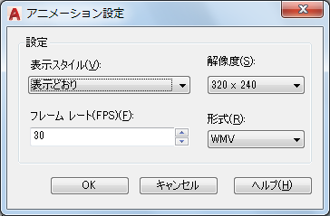 アニメーション出力形式を指定します。使用可能な形式は、[AVI]、[MPG]、[WMV]、[MOV] です。