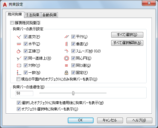 [幾何拘束]タブ([拘束設定]ダイアログ ボックス)