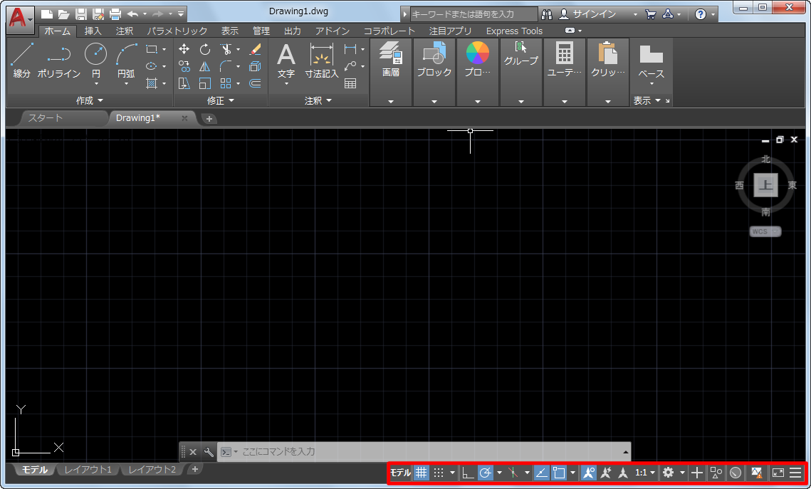 ステータス バーには、カーソルの位置、作図ツール、および作図環境に影響を与えるツールが表示されます。