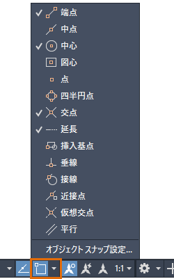 1. 個々のオブジェクト スナップ設定をオンまたはオフにします。