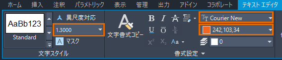- [テキスト エディタ]リボン コンテキスト タブで、次の操作を行ってマルチ テキスト内の文字の書式を変更します。