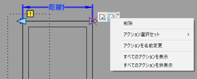- アクション。アクションは、ダイナミック ブロック参照のグリップを操作したときに、ダイナミック ブロック参照のジオメトリがどのように移動、ストレッチ、または変化するかを定義します。