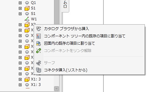 - [ロケーション ビュー]タブで、Inventor パーツを右クリックし、[コネクタ挿入(リストから)]をクリックします。