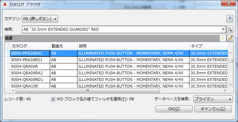 注: [アセンブリ リスト]の値で定義したサブアセンブリ項目は、検索結果に表示されません。サブアセンブリ項目を表示および編集するには、[カタログ ブラウザ]の編集モードを使用します。