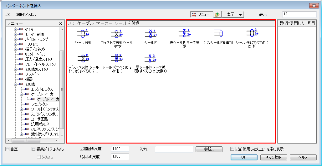 [図面形式]タブの[リファレンスの形式設定]領域で選択するラダー リファレンス設定により決まります。 (組み合わせの場合)プラグ ID またはジャック ID を指定します。プラグの場合は P、ジャック(レセプタクル)の場合は J とします。