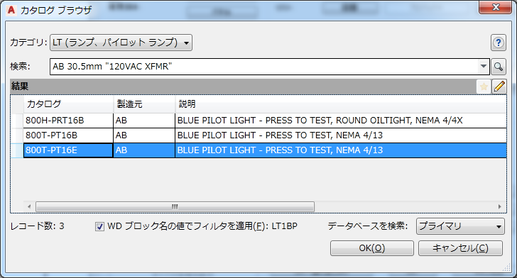 - 検索文字列 AB 30.5mm "120VAC XFMR" を入力し、