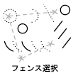 選択フェンスと交差するすべてのオブジェクトが選択されます。[フェンス(F)]の方法は[ポリゴン交差(CP)]と似ています。ただし、フェンスは閉じられないことと、フェンスは自己交差してもかまわないという点が異なります。[フェンス(F)]は、システム変数 PICKADD の影響を受けません。