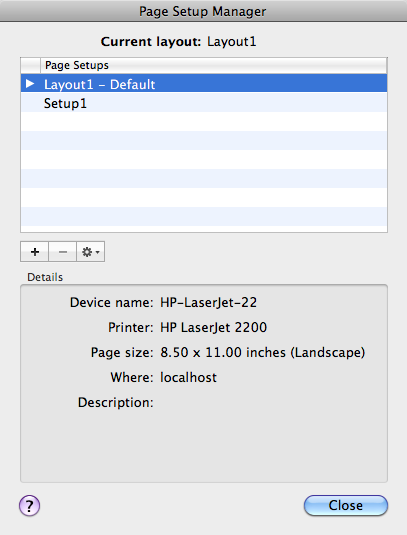 ページ設定が適用される現在のレイアウトが一覧表示されます。