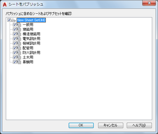 SHEETSET[シート セット マネージャ] (コマンド) 検索: [シート一覧]タブ > シート名を右クリック > [パブリッシュ] > [サブセットおよびシート パブリッシュの設定を編集]