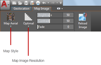 Autodesk Account にサイン インしている場合、マップ イメージの解像度を変更したり、範囲を修正したり、不透明度を調整したり、オンライン マップ サービスで使用可能な最新バージョンに更新することができます。