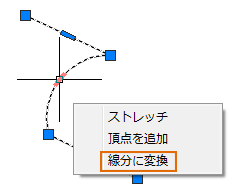 変換する線分セグメントの中央のグリップにカーソルを合わせます。