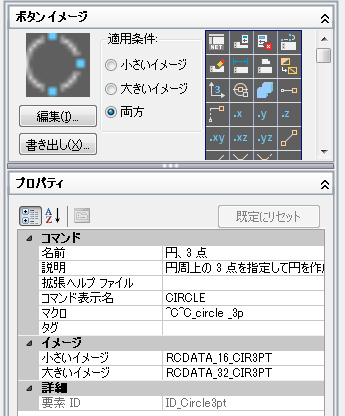 イメージ リストからイメージを選択すると、イメージ名が選択したコマンドの[小さいイメージ]、[大きいイメージ]、または[両方]のプロパティに割り当てられます。