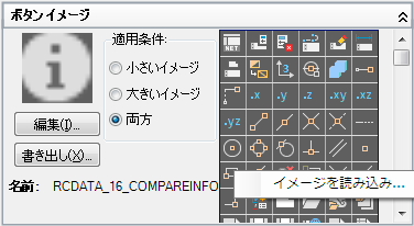 [ボタン イメージ]ペインで、イメージの一覧を右クリックし、[イメージを読み込み]を選択します。