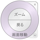 このホイールを使用すると、基本的な 2D ナビゲーション ツールにアクセスできます。スクロール ホイール付きのポインティング デバイスがない場合に特に便利です。ホイールには、画面移動ツールとズーム ツールが含まれます。