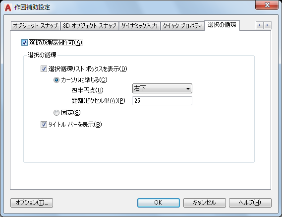 選択の循環機能をオンにするかどうかをコントロールします(システム変数 SELECTIONCYCLING)。