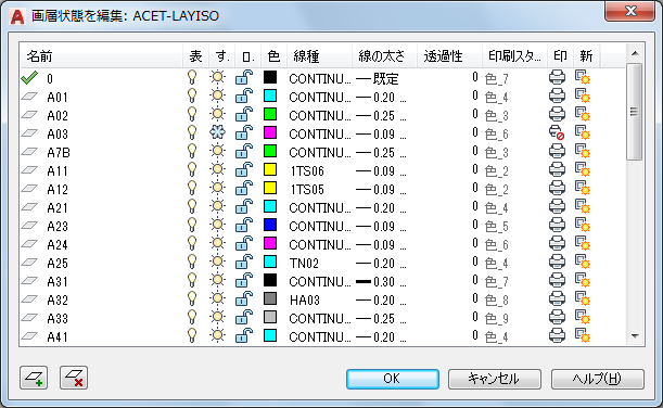 LAYER[画層管理] (コマンド) 検索: [画層状態管理] > [編集]