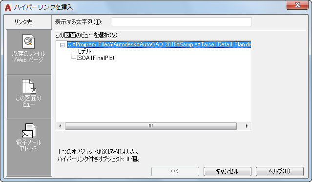 現在の図面内の名前の付いたビューをリンク先として指定します。
