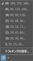 検索 | 極トラッキング | 指定した極角度に沿ってカーソルをトラッキングします。 |