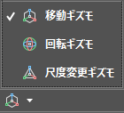 3D ギズモが表示されて、3D 軸または 3D 平面に沿ってオブジェクトのセットを移動、回転、尺度変更しやすくします。 |