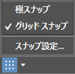 検索 | スナップ モード | グリッドにスナップをオンにします。グリッドのスナップをオンにすると、カーソルを移動したときに、カーソルは指定したグリッド間隔にスナップします。極スナップをオンにすると、カーソルは指定した極位置合わせパスに沿って指定した距離にスナップします。 |