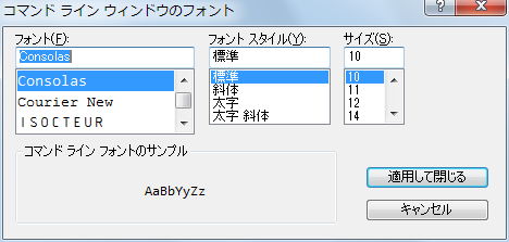 コマンド ウィンドウで使用する文字フォントを、好みに応じて変更することができます。