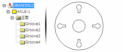 この例では、フォルダ Groove:1 に上位の溝が格納され、配列複写によって他のフォルダが作成されています。フォルダは自動調整されるので、1 つの溝を修正すると、すべての溝が更新されます。