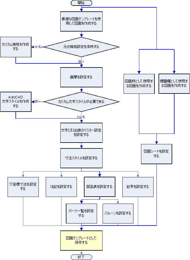 標準の変更および設定を含んでいるテンプレート ファイル Company XYZ.dwt は、AutoCAD Mechanical toolset の既定のテンプレート フォルダにあります。新規作成した図面は、すべてこのテンプレートから開始して、会社の製図規格に準拠することを確認します。