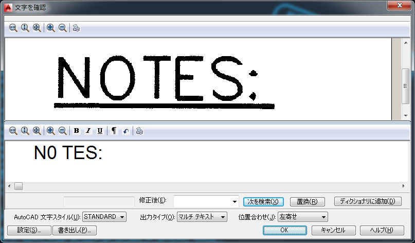 ラスター文字を、AutoCAD 文字または AutoCAD マルチテキストのどちらに変換するかを指定します。
