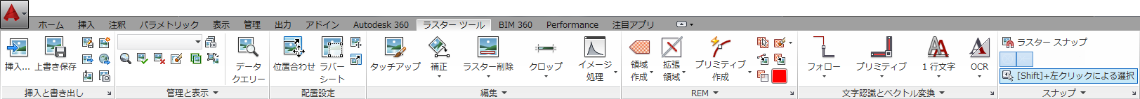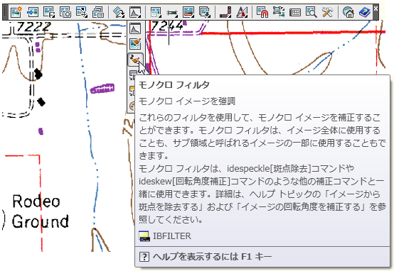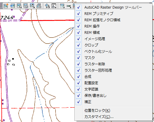 [AutoCAD Raster Design Toolset]ツールバーと開いたサブメニューとツールチップ
