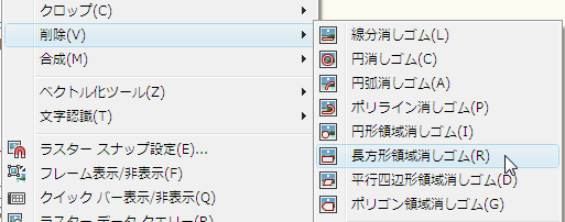 [ラスター]メニュー クリックして、「Mandrel Rib Plate」とそのタイトル ブロックの周囲に長方形を描いて、右クリックし、[Enter]をクリックして領域を削除で消去します。 続きの練習: 左下の隅にある「Jig Bracket」以外のオブジェクトを削除で消去します。これを行うには、[削除]メニューで他の領域タイプのいくつかを使用します。 |