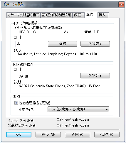 このオプションを選択すると、ここに参照用として表示されている、図面で使用されている座標系にイメージを変換します。