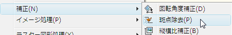 | 3 | [ラスター]メニュー [補正] [斑点除去]を選択します。