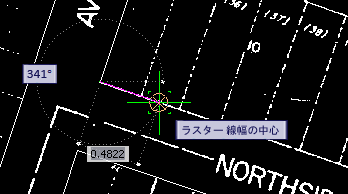 - カーソルを Elmhurst Avenue の西端に移動し、ラスター線分の中央にスナップします。ラスター スナップ記号とラスター中央のツールチップを調べて、これを確認しします。