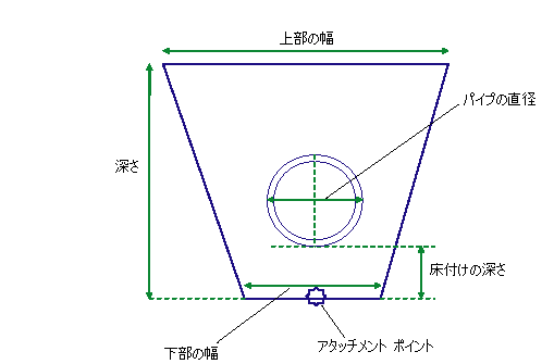 | 床付けの高さ | トレンチ底部より上のパイプの床付けの深さ | 数値、正 |