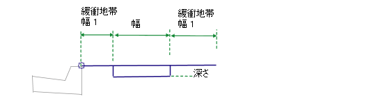 内側の緩衝地帯、歩道、および外側の緩衝地帯のリンクをアタッチメント ポイントの外側に水平に挿入します。緩衝地帯は、幅をゼロに設定することで、省略することもできます。