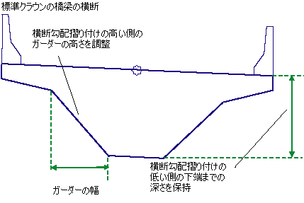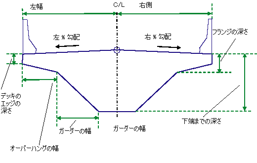 橋梁デッキの端からフランジ元までの垂直距離 |