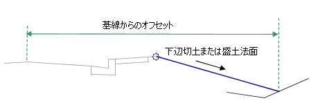 [法面展開オフセット]の固定値を変更し、法面展開オフセットとオフセット線形を繋ぐ場合に使用します。オフセットを指定するターゲットとして、線形、ポリライン、計画線、および測量図形の各オブジェクト タイプが使用できます。 |