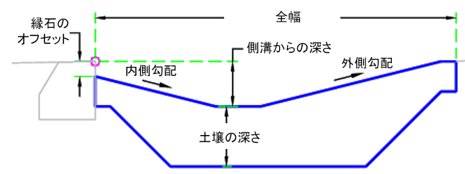 全幅 レイン ガーデン全体の幅 数値、正