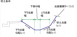 | 盛土法面 | 盛土の法面展開リンクの勾配 | 数値、正 | 4 ( : 1) |