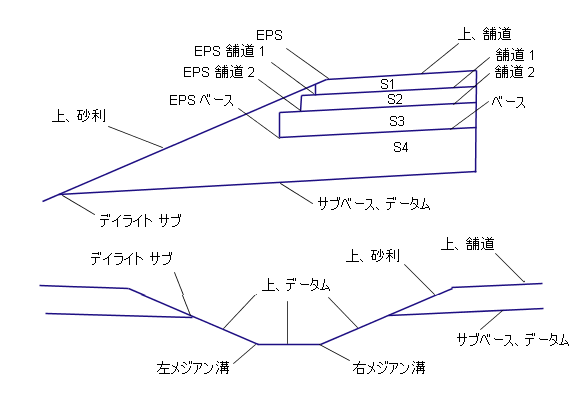 舗装路肩の基層および路盤サーフェス間の深さ |