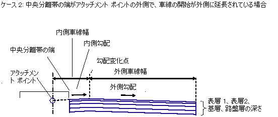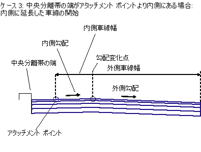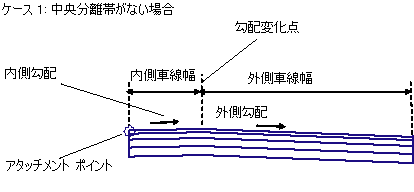 中央分離帯がない状態での内側車線の幅(アタッチメント ポイントから勾配変化点までの距離) |