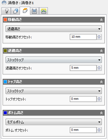 退避高さオフセットは、上にある退避高さのドロップダウン リストの選択内容を基準に適用されます。