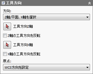 次に、工具方向を設定し、パーツの傾斜面に原点を設定します。